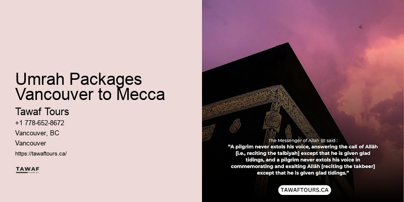 Imagine you're a spiritual seeker in Vancouver, yearning for a deeply personal and transformative journey to the heart of Islam's holiest sites. Tailored packages ensure your spiritual needs and preferences are met, making your experience truly personal and unforgettable. Let us help you connect with your faith on a deeper level. Umrah package reminders Whether you prefer to pay online, via bank transfer, or in person, they've got you covered. Learn more about Umrah Packages Vancouver to Mecca here