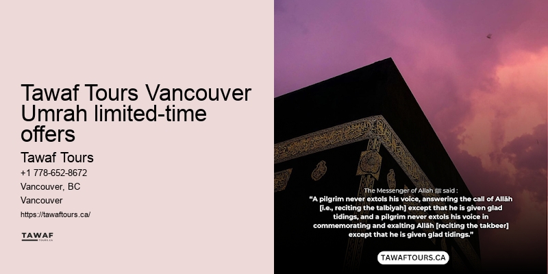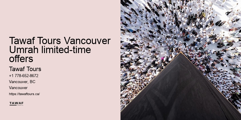 You'll learn the rich history and significance of each site, profoundly enriching your Umrah experience. Payment is straightforward, with various options available to suit your convenience. Text before the meta title text for each paragraph Tawaf Tours Vancouver Umrah limited-time offers Text after the meta title text paragraph You're probably looking for a package that not only fits your budget but also offers the spiritual and cultural enrichment you seek on this sacred journey. Read more about Experience the Essence of Umrah with Tawaf Tours from Vancouver here. Our 24/7 customer support is always a call away, ready to assist with any queries or concerns you might've during your trip.